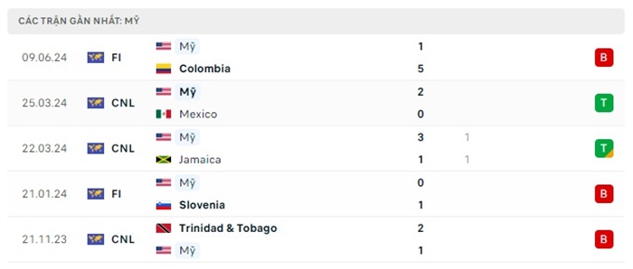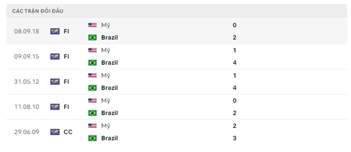 Phong độ gần đây Mỹ vs Brazil