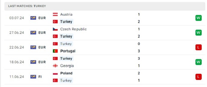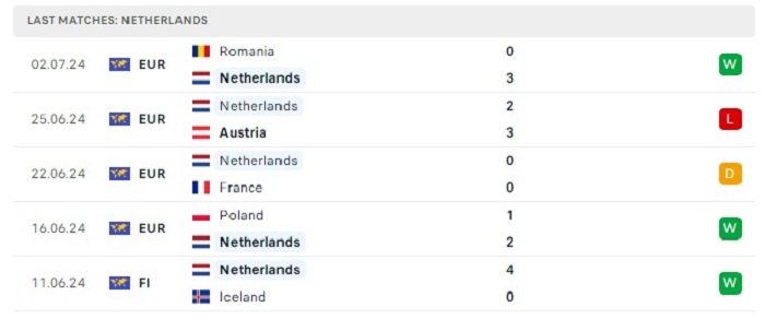 Phong độ gần đây Hà Lan vs Thổ Nhĩ Kỳ