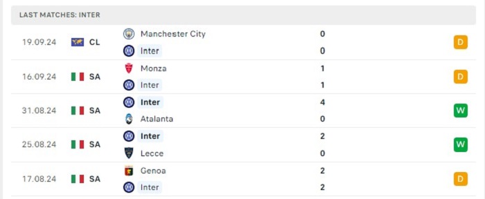 - Phong độ Inter Milan