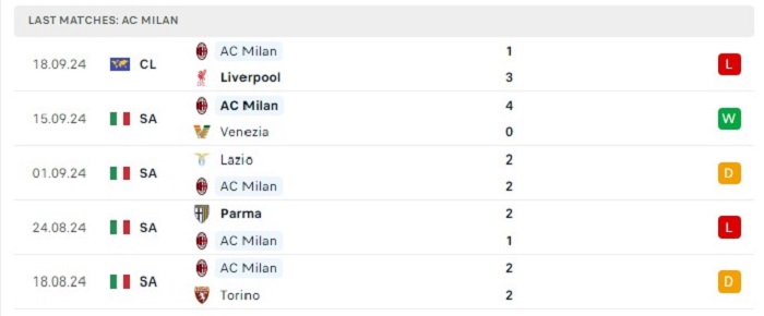 - Phong độ AC Milan