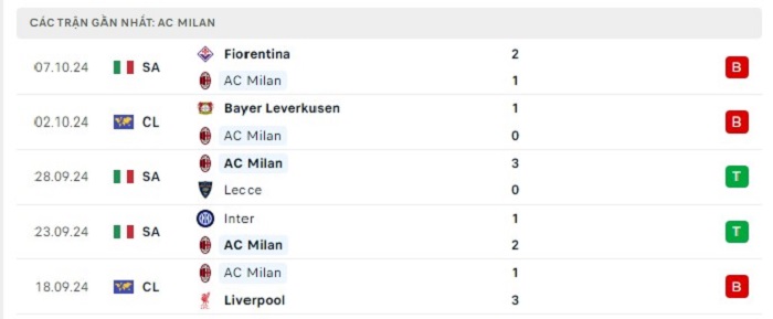• Phong độ AC Milan