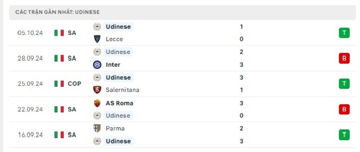 • Phong độ Udinese