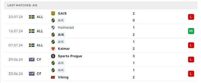 AIK Solna cũng có được nhiều thành công của mình trước GAIS Goteborg trong quá khứ, đặc biệt là trên sân nhà khi họ toàn thắng kèo châu Âu 5 trận đón tiếp đối thủ gần đây cho thấy được sức mạnh của họ, thành tích của AIK Solna cũng đa phần có được tr4een sân nhà ở mùa giải hiện tại trong khi với GAIS Goteborg việc đã thua 5 trogn 7 trận đấu theo kèo châu Âu trên sân khách cũng là điều đáng phải lo ngại với họ tại chuyến hành quân sắp tới.