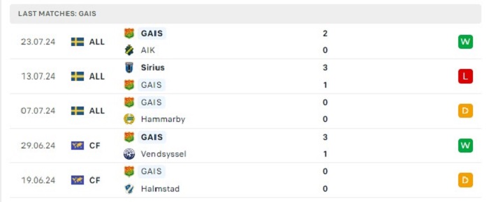 Phong độ gần đây AIK Solna vs GAIS Goteborg