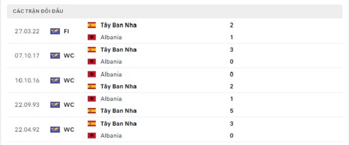 Phong độ gần đây Albania vs Tây Ban Nha