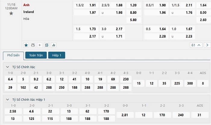 Soi kèo tỷ số Anh vs Ireland