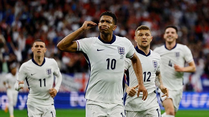 Anh:  Jordan Pickford, Marc Guehi, John Stones, Kieran Trippier, Kyle Walker, Jude Bellingham, Declan Rice, Trent Alexander-Arnold, Harry Kane, Phil Foden, Bukayo Saka