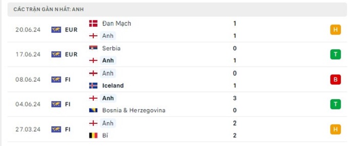 Phong độ gần đây Anh vs Slovenia