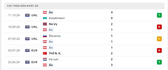 Phong độ gần đây Áo vs Na Uy