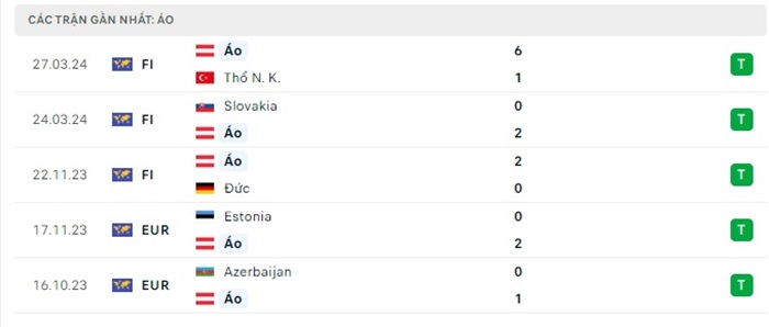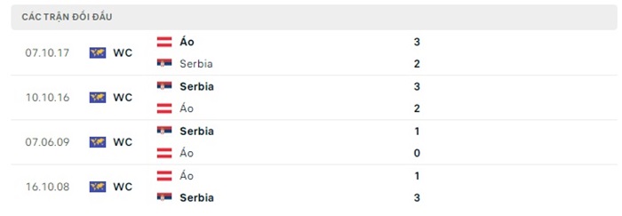 Phong độ gần đây Áo vs Serbia