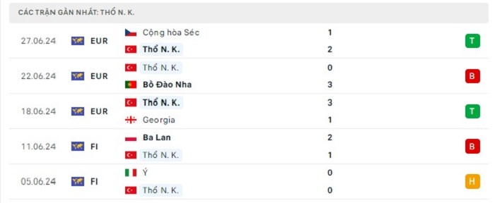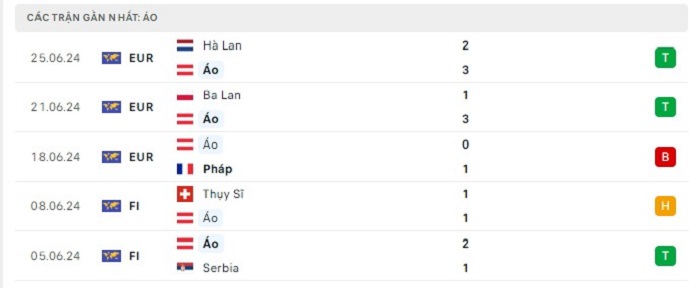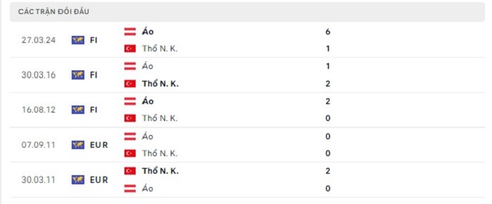 Phong độ gần đây Áo vs Thổ Nhĩ Kỳ