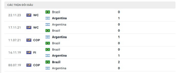 Giữa Argentina và Brazil trong quá khứ có thể thấy được những trận gặp nhau của hai đội cũng thường xuyên không có quá nhiều bàn thắng ghi được. Cụ thể là có tới 5 lần gặp nhau gần đây của hai đội cũng chỉ xuất hiện từ 2 bàn thắng ghi được trở xuống, hàng công của Argentina thời điểm này cũng không quá ấn tượng trong khi hàng thủ của họ có sự chắc chắn, do đó mà khó có thể kỳ vọng tới một trận đấu bùng nổ về mặt tỷ số của cả hai đội.