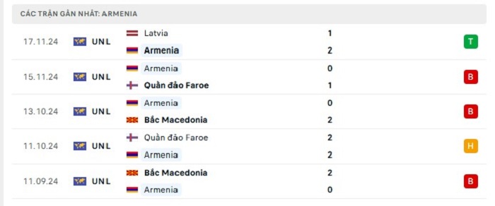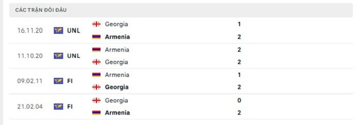 Phong độ gần đây Armenia vs Georgia