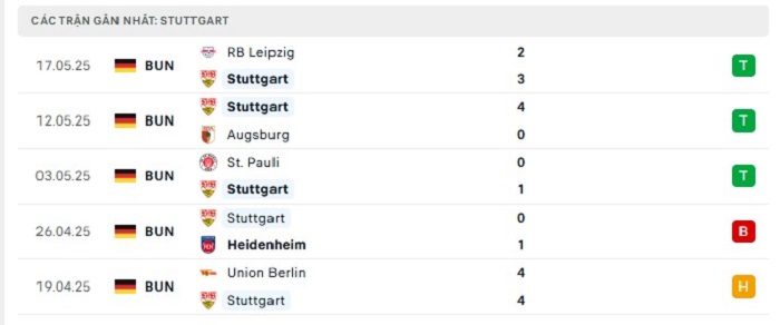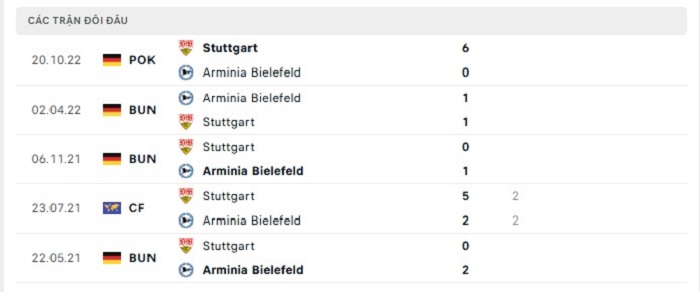 Phong độ gần đây Arminia Bielefeld vs Stuttgart