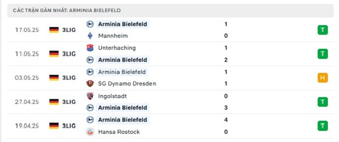 - Phong độ Arminia Bielefeld