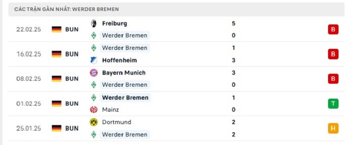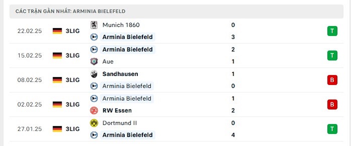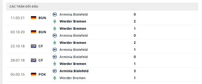 Phong độ gần đây Arminia Bielefeld vs Werder Bremen