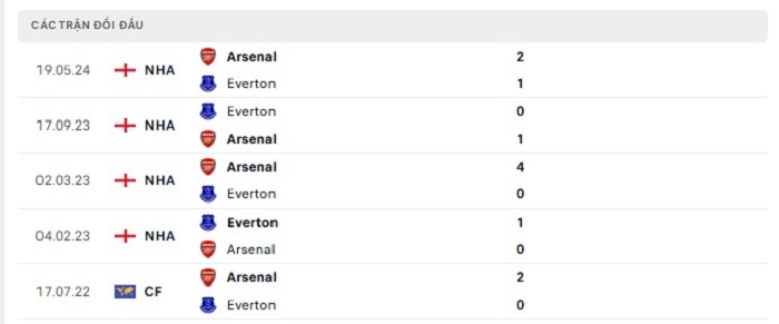 Lịch sử đối đầu của Arsenal vs Everton