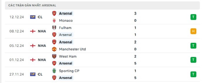 • Phong độ Arsenal
