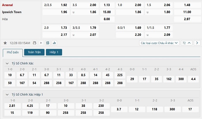 Soi kèo châu Á, kèo chấp Arsenal vs Ipswich