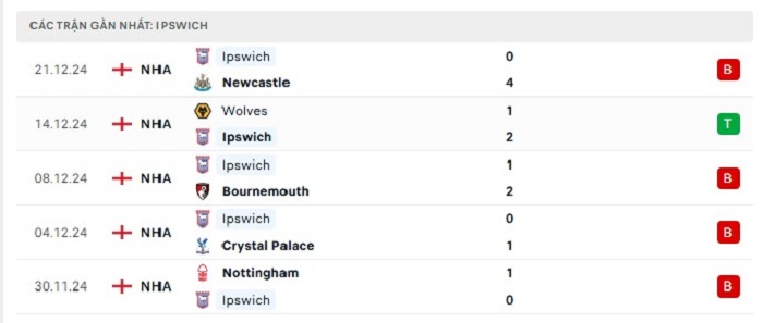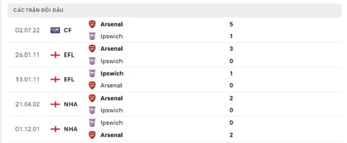 Bảng bóng đá trận đấu Arsenal vs Ipswich