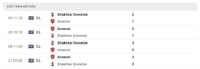 Quá khứ giữa hai đội với Arsenal họ cho thấy được những thành công trước Shakhtar Donetsk trên sân nhà, thật vậy bởi trong 4 lần gặp nhau trước đây mỗi bên có được cho mình 2 chiến thắng, dù vậy tại tổ ấm của mình Pháo thủ thành phố London có được thành tích toàn thắng theo mốc kèo châu Âu của trận đấu cho thấy được điểm mạnh của họ, chính bởi lý do này mà có thể đặt niềm tin vào Arsenal theo mốc kèo châu Âu của trận đấu sắp tới giữa hai đội.