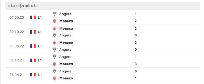 Bảng bóng đá trận đấu AS Monaco vs Angers