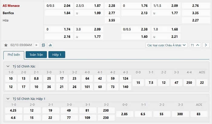 Soi kèo châu Á, kèo chấp AS Monaco vs Benfica