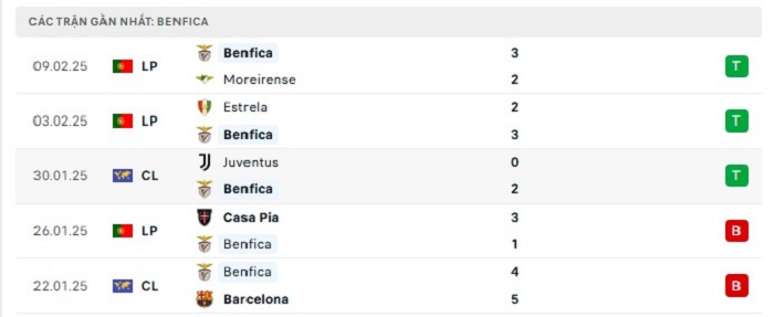 • Phong độ Benfica
