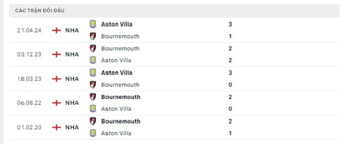 Những lần gặp nhau giữa Aston Villa và Bournemouth trong quá khứ vốn cũng thường diễn ra kịch tính và hấp dẫn với khá nhiều bàn thắng ghi được cho cả hai đội. Cụ thể là cả 5 lần hai đội gặp nhau trên sân Villa Park gần đây đều đã xuất hiện từ 3 bàn thắng ghi được trở lên trong trận. Hàng công của Aston Villa thì đấu khá tốt nhưng hàng thủ của họ cũng không phải là quá chắc chắn, chính vì vậy mà có thể đặt niềm tin vào một trận đấu bùng nổ về mặt tỷ số của cả hai đội.