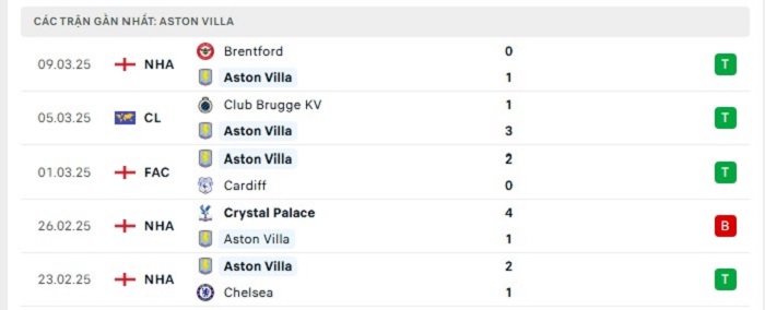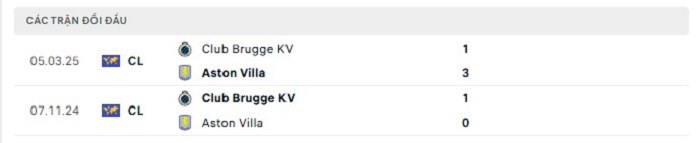 Bảng bóng đá trận đấu Aston Villa vs Club Brugge