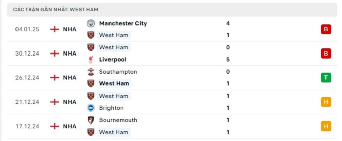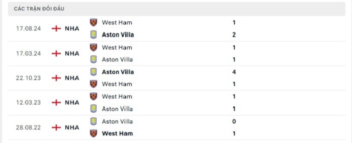 Bảng bóng đá trận đấu Aston Villa vs West Ham