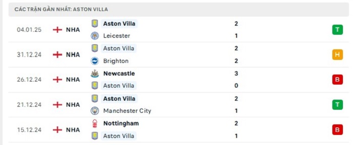 - Dự đoán tỉ số trận đấuAston Villa vs West Ham