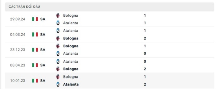 Lịch sử đối đầu của Atalanta vs Bologna