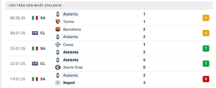 • Phong độ Atalanta