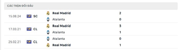 Phong độ gần đây Atalanta vs Real Madrid