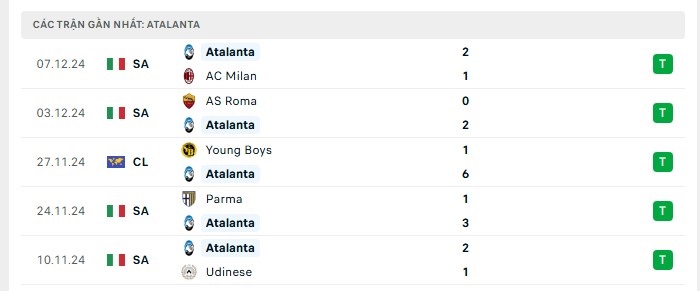 - Phong độ Atalanta