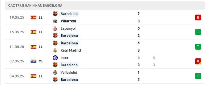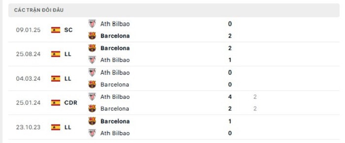 Phong độ gần đây Athletic Bilbao vs Barcelona