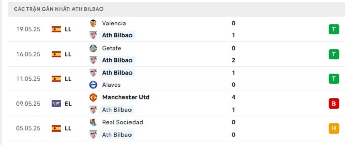 • Phong độ Athletic Bilbao