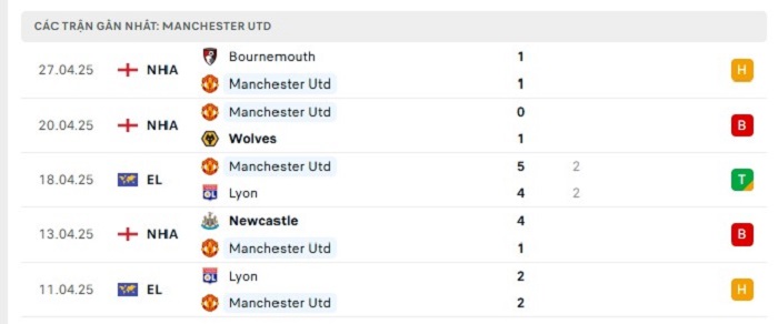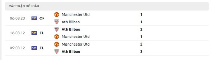 Phong độ gần đây Athletic Bilbao vs Manchester United