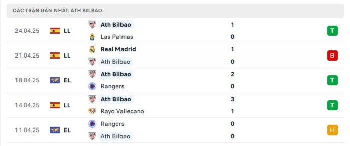 - Phong độ Athletic Bilbao