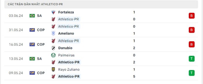 • Phong độ Atl Paranaense