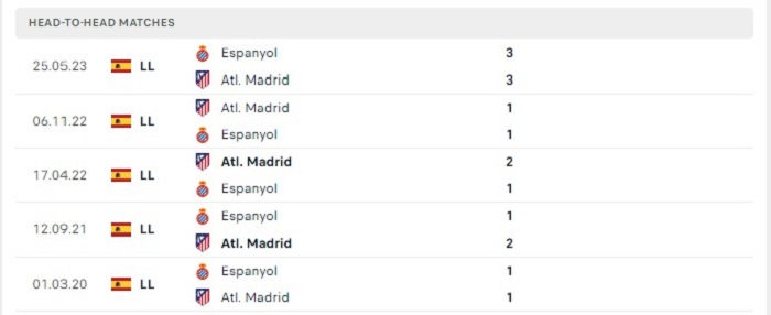 Lịch sử đối đầu của Atletico Madrid vs Espanyol