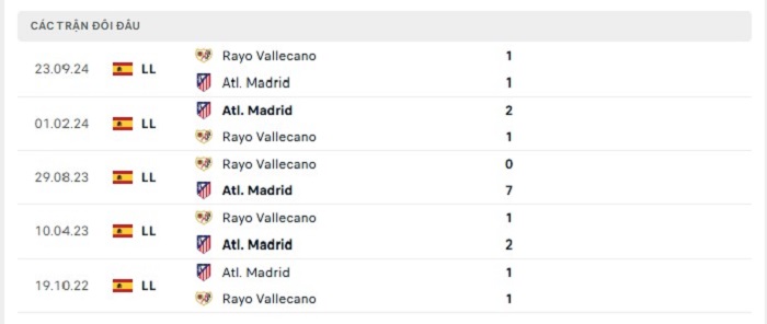 Thành tích trong quá khứ với Atletico Madrid họ cũng có được sự vượt trội hơn nhiều so với Rayo Vallecano, điều này cũng đã thể hiện qua thành tích đối đầu khi họ bất bại ở tổng cộng 10 lần gặp nhau trước đây với 8 trận thắng kèo châu Âu và chỉ hoà 2 trước đối thủ. Hơn nữa với Rayo Vallecano ở giải đấu họ cũng chỉ để thua duy nhất 1 trận đấu theo kèo châu Âu trên sân nhà trong khi thắng tới 11 trận đấu từ đầu mùa giải tới nay, do vậy mà Atletico Madrid có một chiến thắng cũng trong tầm tay của họ.