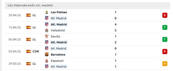 Phong độ gần đây Atletico Madrid vs Rayo Vallecano