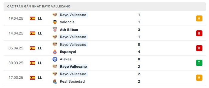 - Phong độ Rayo Vallecano