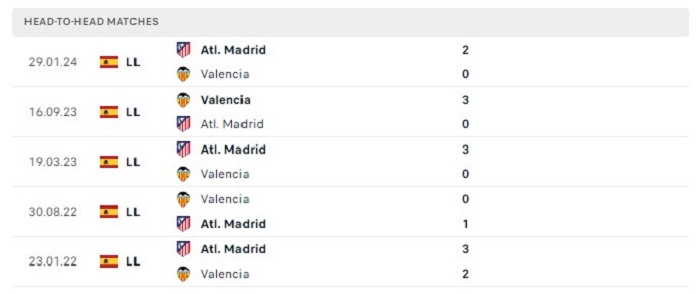 Phong độ gần đây Atletico Madrid vs Valencia