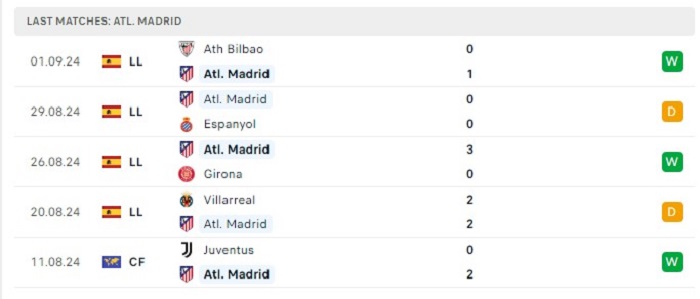 - Phong độ Atletico Madrid