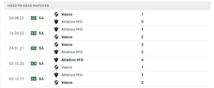 Thành tích trong quá khứ với Atletico-MG họ có những bất lợi của mình trước Vasco trong nhiều năm qua, cụ thể là 10 lần gặp nhau gần đây nhất của hai đội Atletico-MG có tới 6 lần phải nếm mùi thất bại theo mốc kèo châu Âu trong khi chỉ có 2 lần chiến thắng, phong độ từ đầu mùa giải tới nay của Atletico-MG cũng chỉ có 5 lần thắng kèo châu Âu trong khi với Vasco là con số 7 trận đấu, bởi vậy mà đội khách cũng sẽ là một lựa chọn không hề tồi.