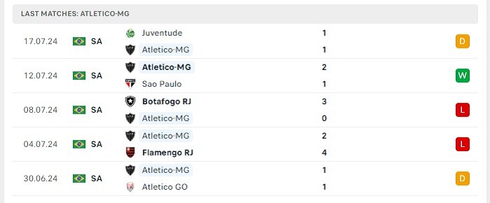 - Phong độ Atletico-MG