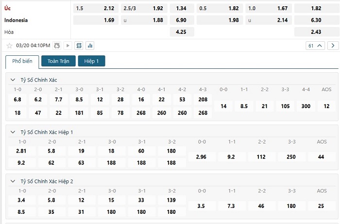 Soi kèo châu Á, kèo chấp Australia vs Indonesia